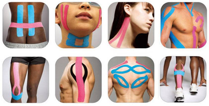 Pero ¿por qué son de colores? Inicialmente nacen en color azul, pero al día de hoy es posible verlas en distintos colores como rojo, verde, amarillo, negro o incluso color carne. El único motivo del cambio de color es la creencia en la cromoterapia, basada en la teoría de que cada color ejerce una influencia emocional distinta en una misma persona, por lo que aplicaríamos un Kinesiotape azul si queremos obtener psicológicamente un efecto frío, y el Kinesiotape rojo para un efecto calor, por ejemplo. Aunque no existe constancia positiva de ello, dejándolo a la creencia tanto del usuario como del profesional.